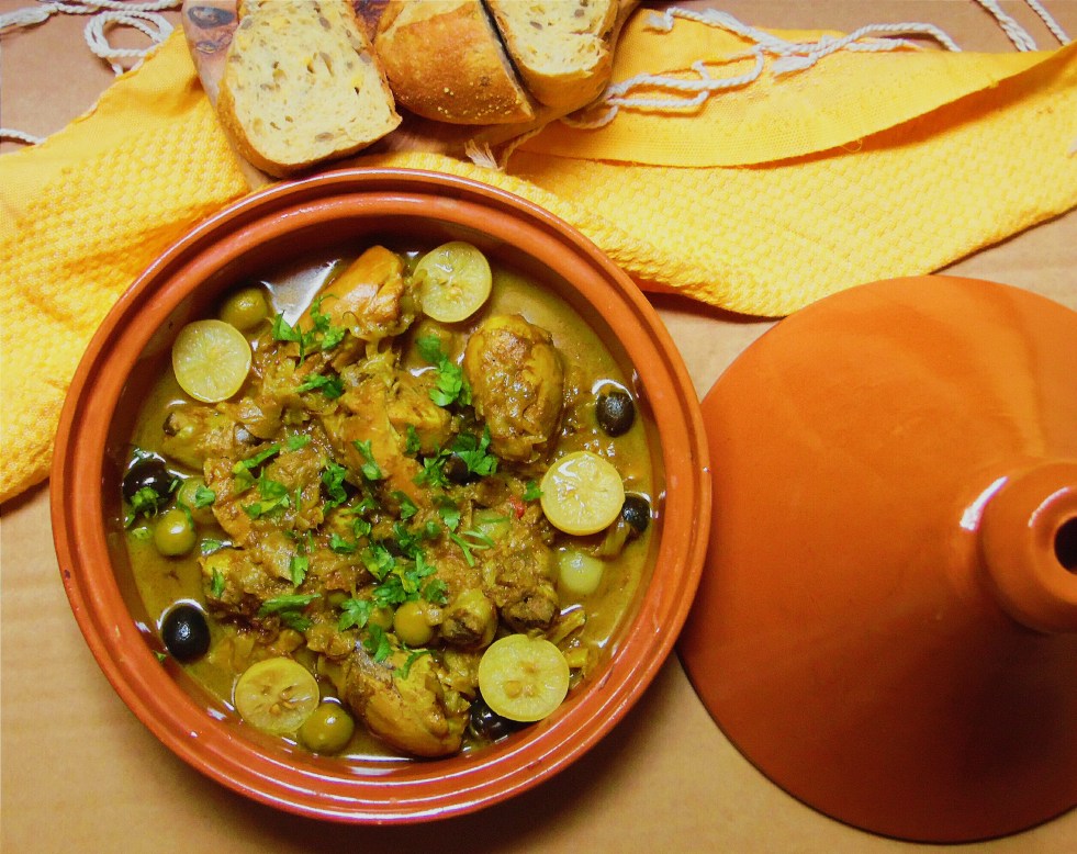 Tajine de poulet aux citrons confits et aux olives